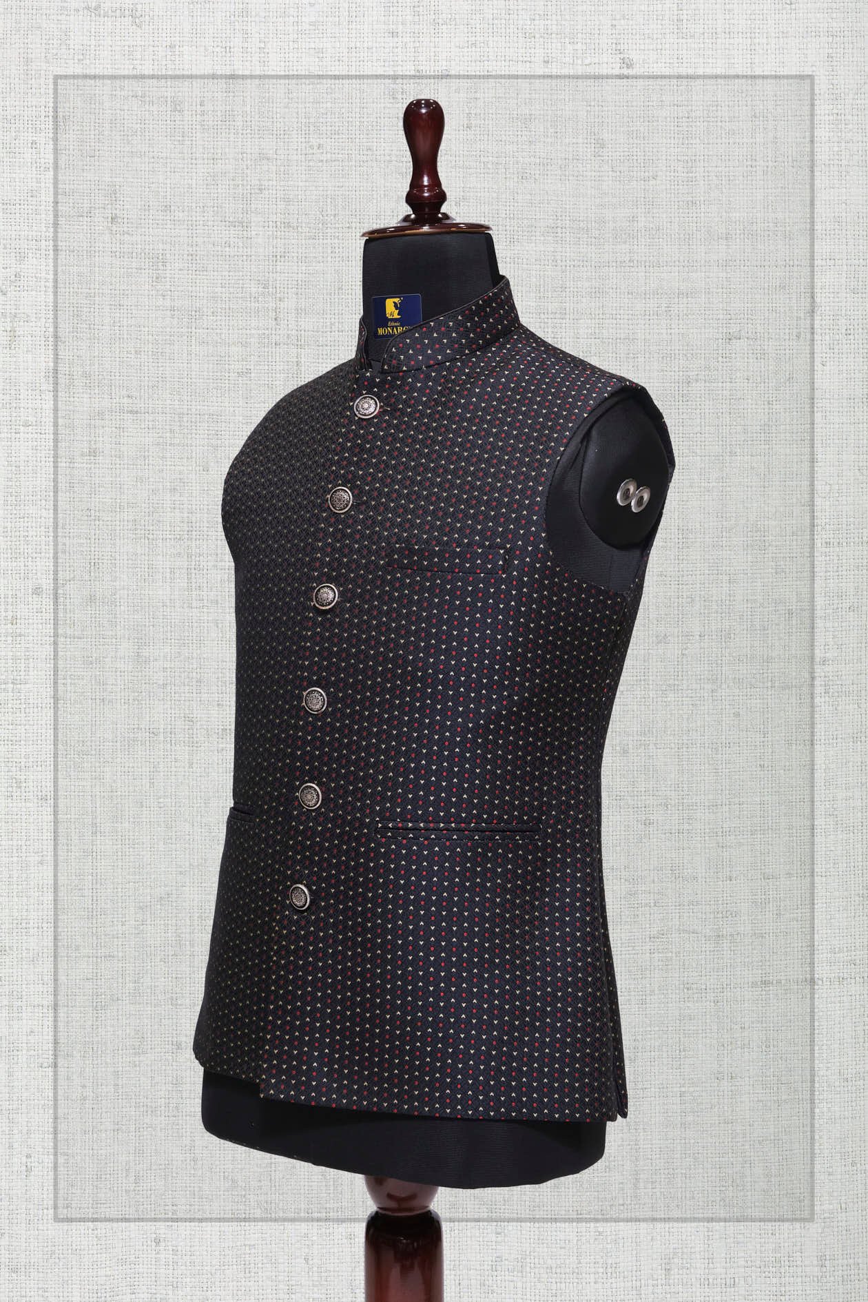 Crafted from premium-quality fabrics, this navy blue Nehru jacket offers a luxurious feel and exceptional comfort. The deep navy hue adds depth and versatility, allowing you to effortlessly style it for both formal and semi-formal occasions.